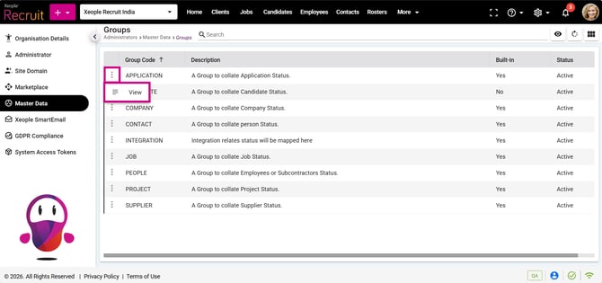 - Now, you will see Groups, click on Application three-dot button and select View from the drop-down.