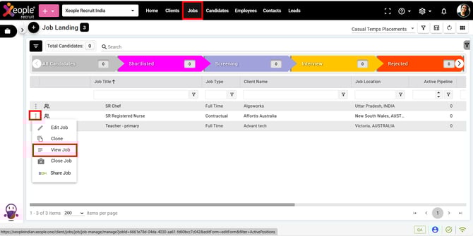 - Similarly, you can directly contact candidates in bulk from the Grid View on the Job Summary page.