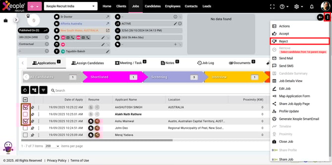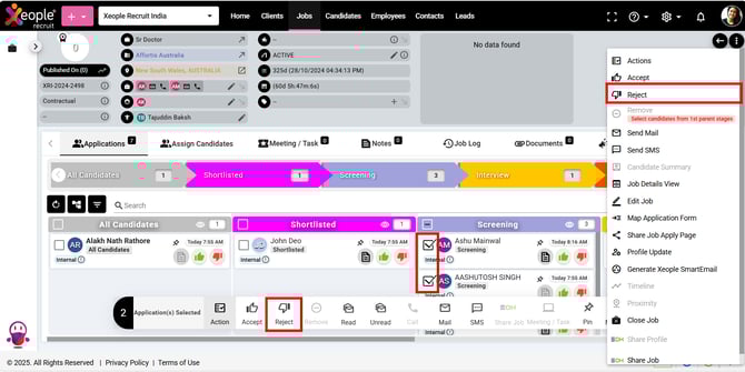 To navigate to the Bulk Reject Candidate feature, follow these steps: