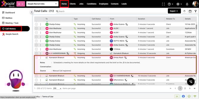 The details entered in the Notes description section while adding a call log will appear in the Call History under Home.