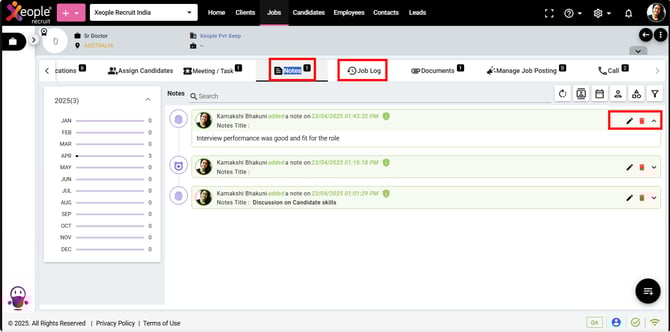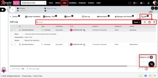 Call Logs Registered – Notes & Job Log