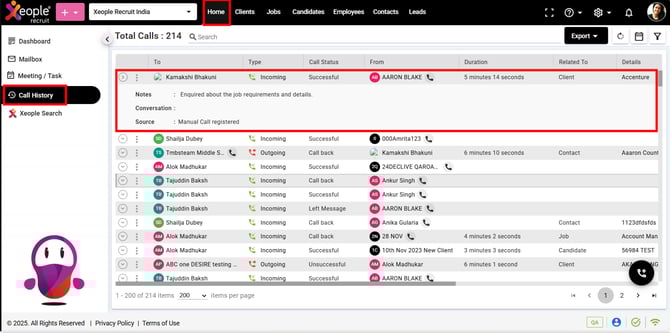 The End Caller refers to the person receiving the call. For instance, in an outgoing call made by an employee regarding a job, the End Caller could be the candidate, client, or contact. In incoming calls, the End Caller will similarly be the candidate, client, or contact—other than the employee initiating the call related to the job.