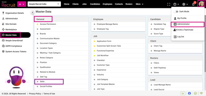 Administrator - Master Data - Skills