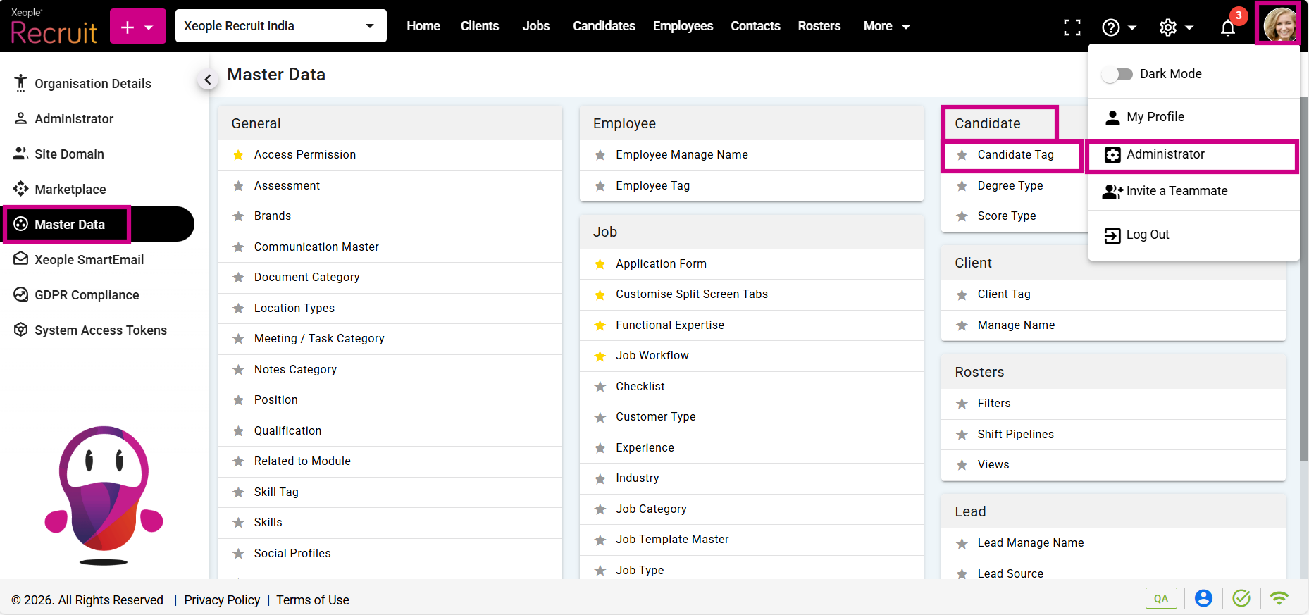 Administrator – Master Data – Candidate - Tag