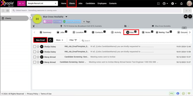 - To send a new email to the client, click on New Email, which automatically populates the client's email ID.