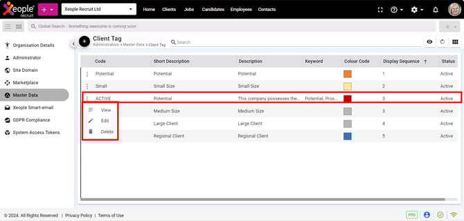 - Click on the three-dot button next to each client tag to View, Edit, or Delete a client tag.