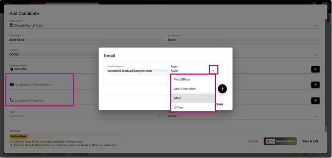 Add Candidate – Email – Type