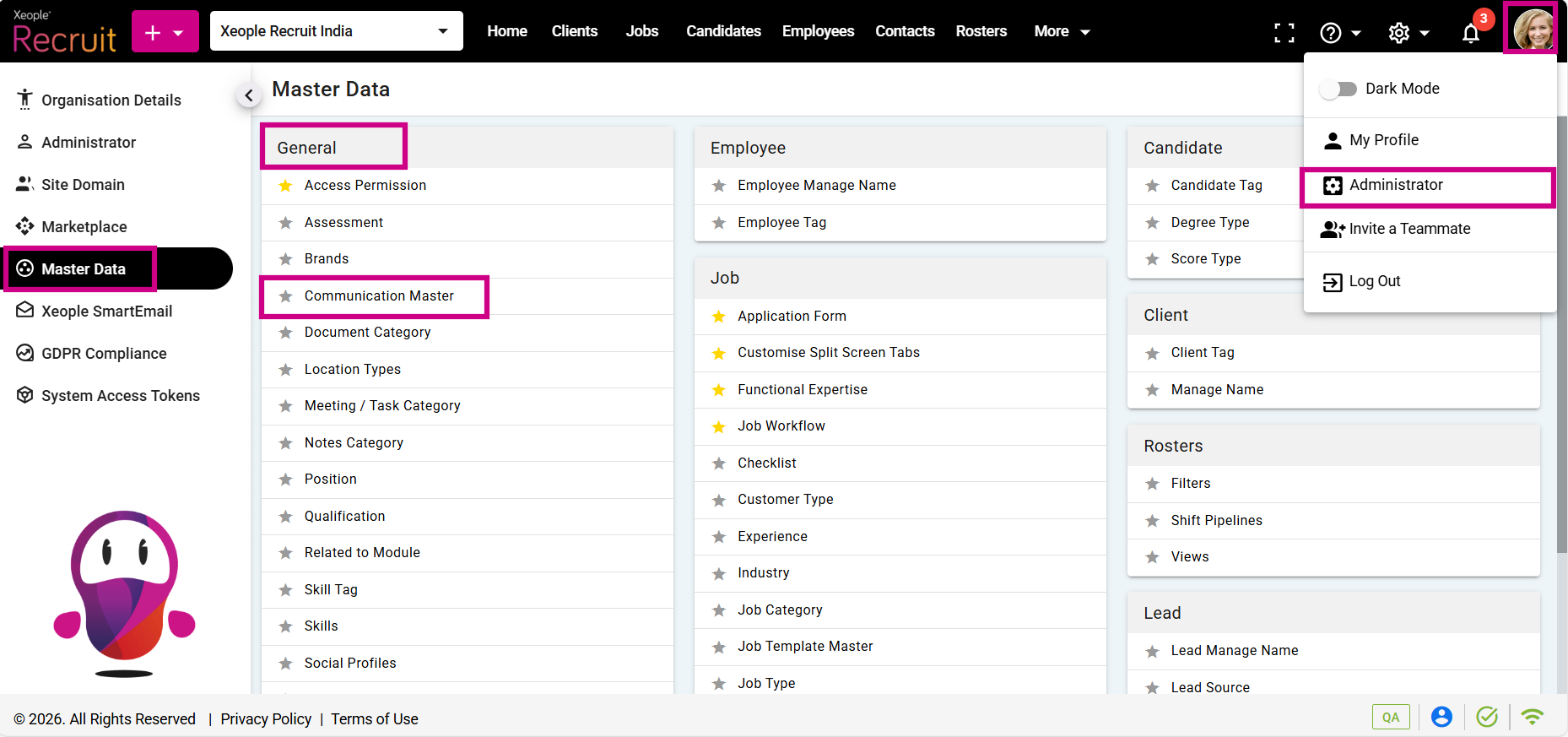 Profile Picture – Administrator – Master Data – Communication Master
