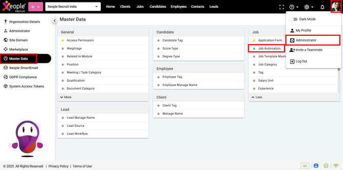 All changes mentioned here are controlled via the Job Automation Master and apply across all the Job Workflow Stage mapped with a Stage Type.
