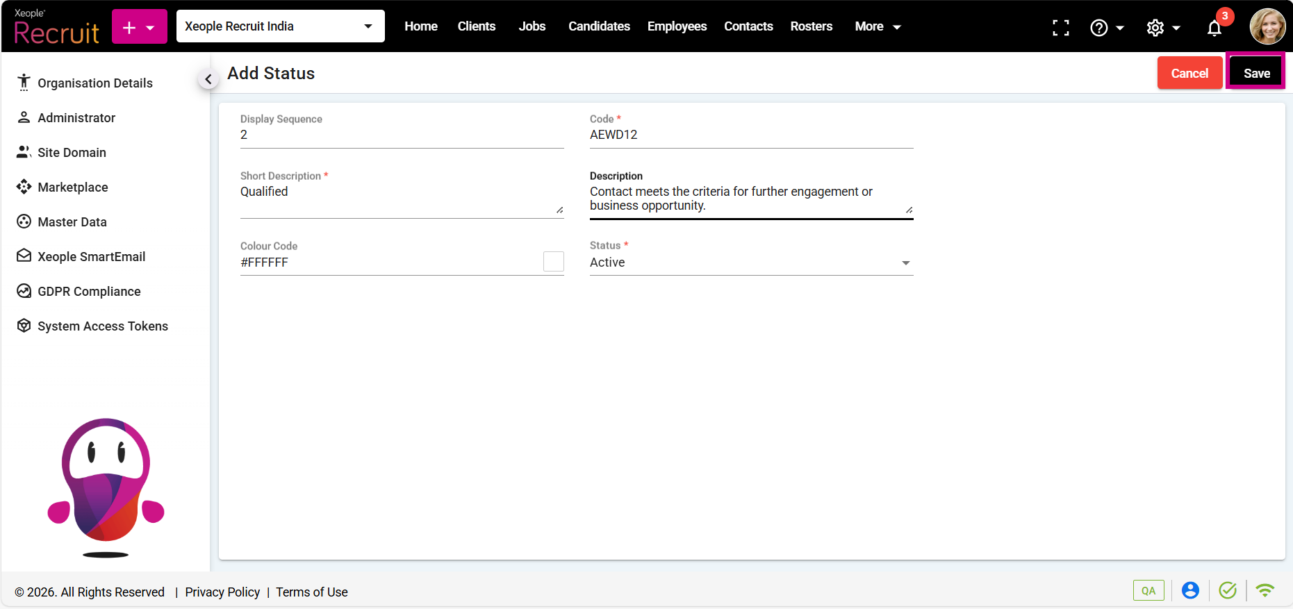 To configure Contact Status Master, proceed by following the steps outlined below: