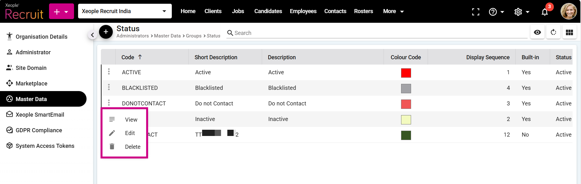 - If you wish to view, modify or remove the added status, click the three-dot button and select View or Edit, or Delete from the drop-down menu, as required.