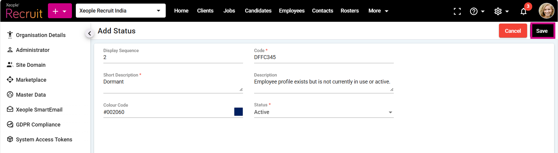 To configure Employee Status Master, proceed by following the steps outlined below: