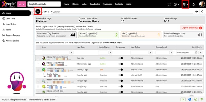 - Click the (+) button on the top left-hand side to Invite User.