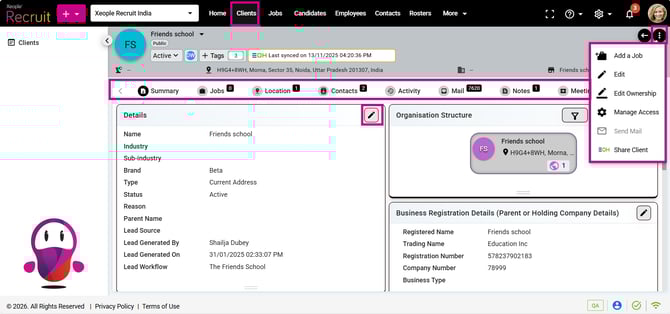 - Step 2. Client Landing: Provides a centralised hub to access and manage all created clients, displaying key details like client name, parent name, industry, state, and city.