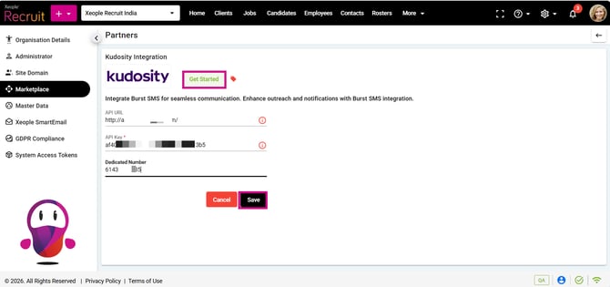 Xeople integrates with Kudosity to enable seamless SMS communication for recruitment workflows such as notifications, alerts, and candidate engagement.