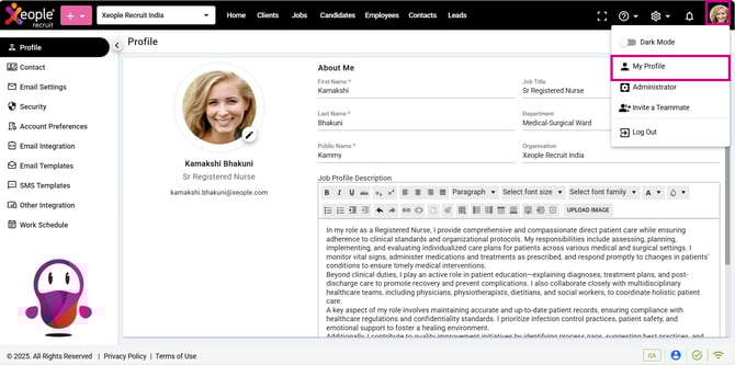 - Step 1. Setup Profile Details: Provide essential information like name, job title, and department to establish your identity within XeopleRecruit, aiding quick identification by others and fostering collaboration.