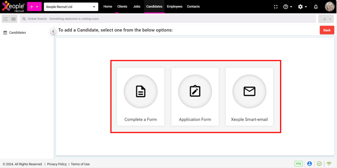 - Select Candidate and follow the steps outlined above to create a new candidate.