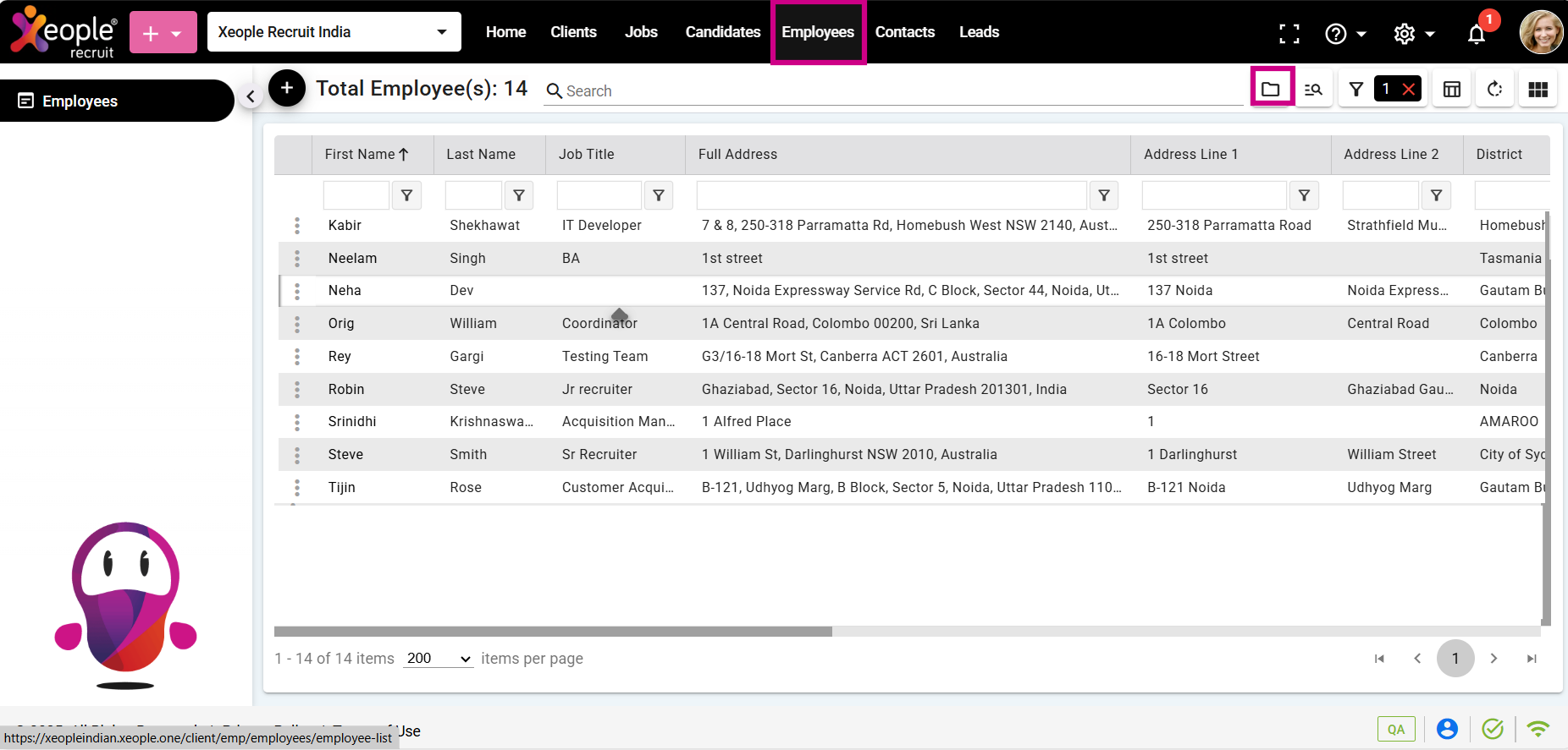 - Navigate to the main navigation header bar and click on Employees.