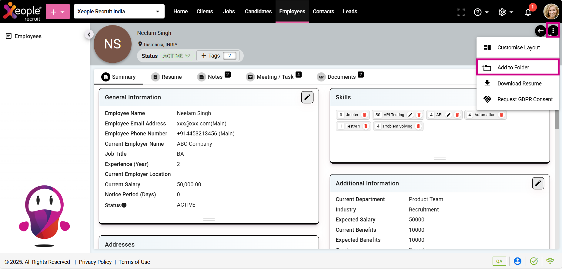 Employee Summary Page - Add to Folder