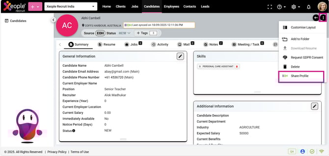 Candidate Summary – Three- dot - Share Personnel