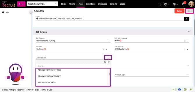 - You can select the newly created Qualification from the Qualification drop-down when creating a job to ensure only suitable candidates are shortlisted.