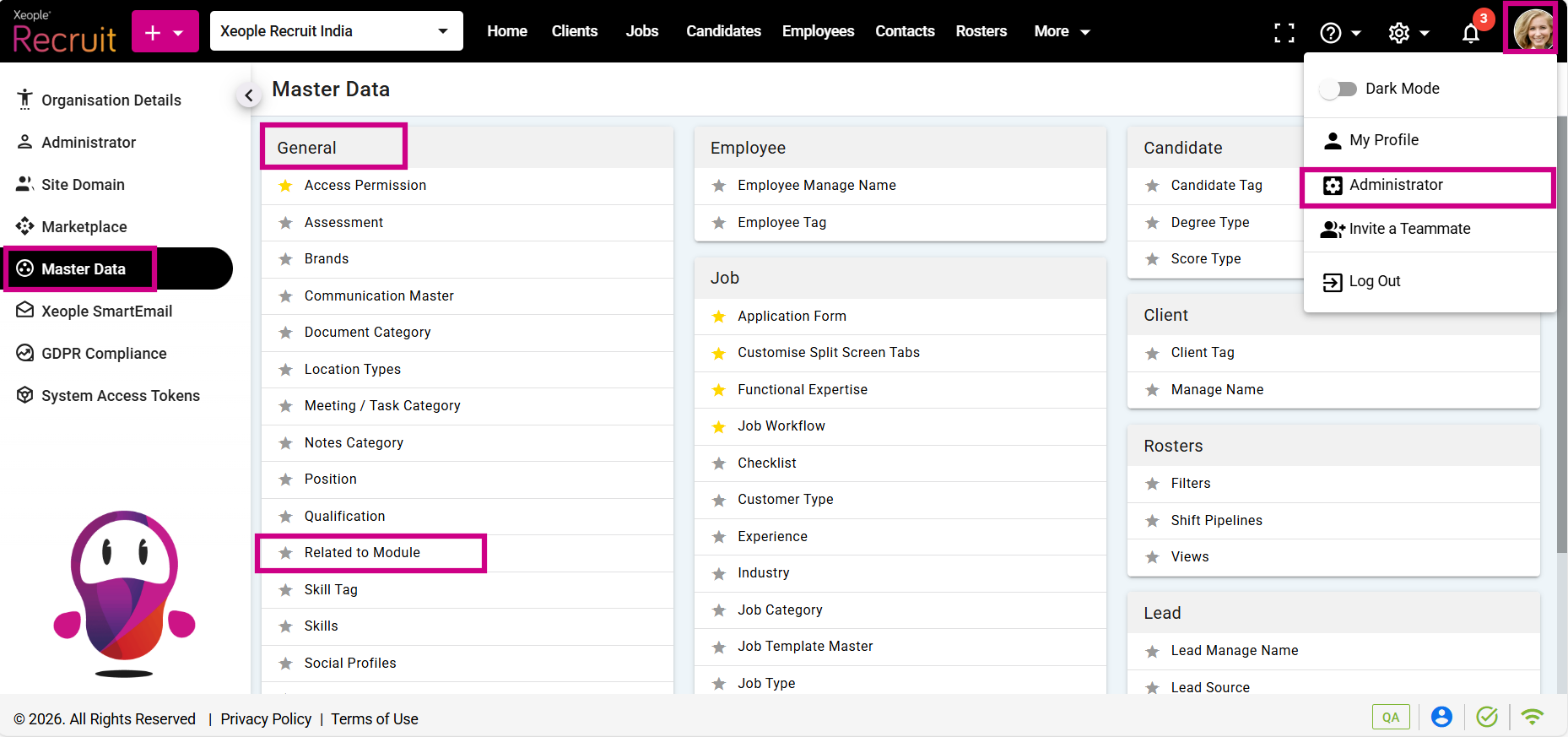 Profile Picture – Administrator – Master Data – Related To Module