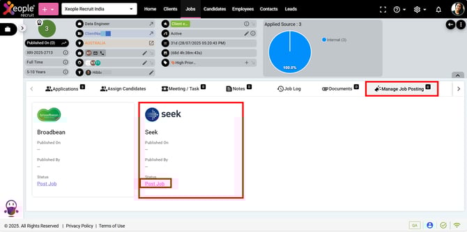 - You have the option to explore different job boards; choose SEEK to post a job.