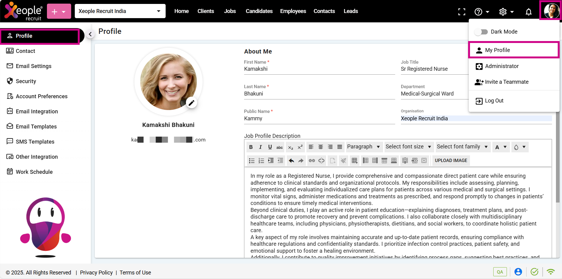 - Click on the Profile picture and select My Profile from the drop-down menu.