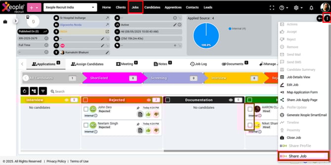 - Click on the three-dot button on the top right-hand side to Share Job.