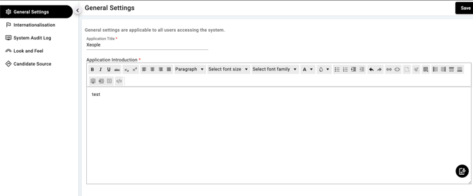 The General Settings area controls system-wide display information that applies to all users accessing the platform.