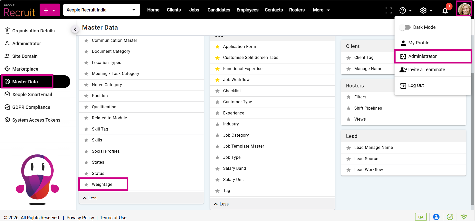 Profile Picture – Administrator – Master Data – Weightage