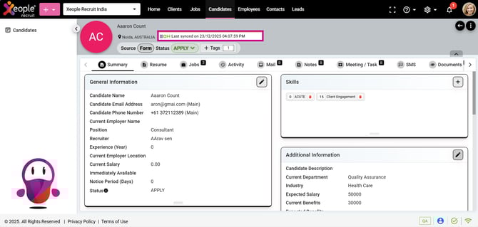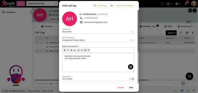 Fixed an issue where call actions opened incorrect candidate profiles and showed wrong phone numbers, and resolved intermittent ‘Operation Fail’ errors despite valid input.