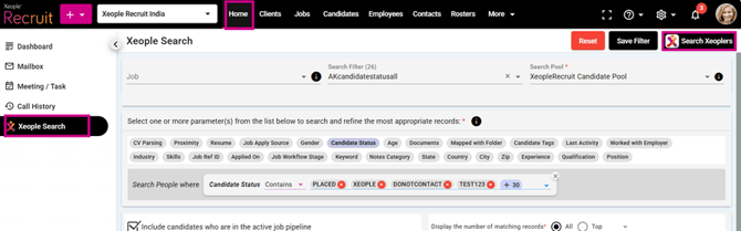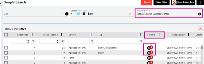 2.Xeople Search - Search Xeoplers - Candidate Folder