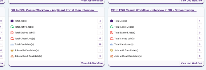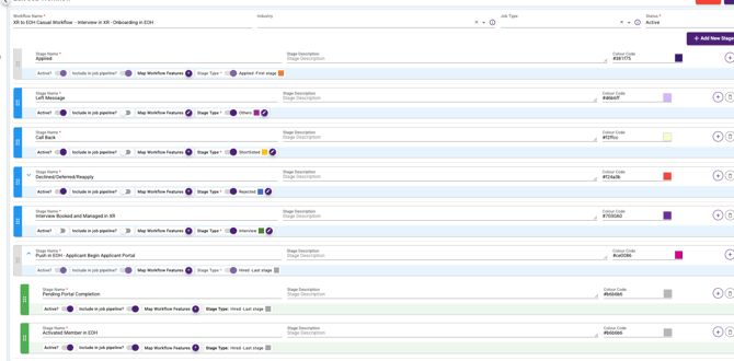 To ensure seamless movement from application to onboarding, start by creating an XR Casual Workflow that feeds into the standard EOH Recruitment Stages.